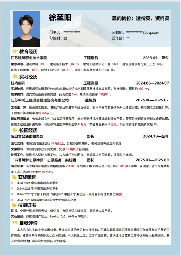 想知道打动HR的简历秘诀?从优胜作品里提炼出4大干货:01.结构清爽,一眼锁定:让你的简历像一份清晰的导览图,模块分明、重点突出,让HR一眼就看到你的闪光点。02.用语得体,专业在线:用简洁准确的语言讲述你的故事,避免错漏,用专业感赢得第一印象。03.经历对口,直击目标:明确写出你的心仪岗位,并让每一段经历都围绕它展开,告诉HR“你为什么适合”。04.点亮不同,引人注目:在规范的基础上,加入一点属于你的个性或思考,让简历在众多申请中脱颖而出!