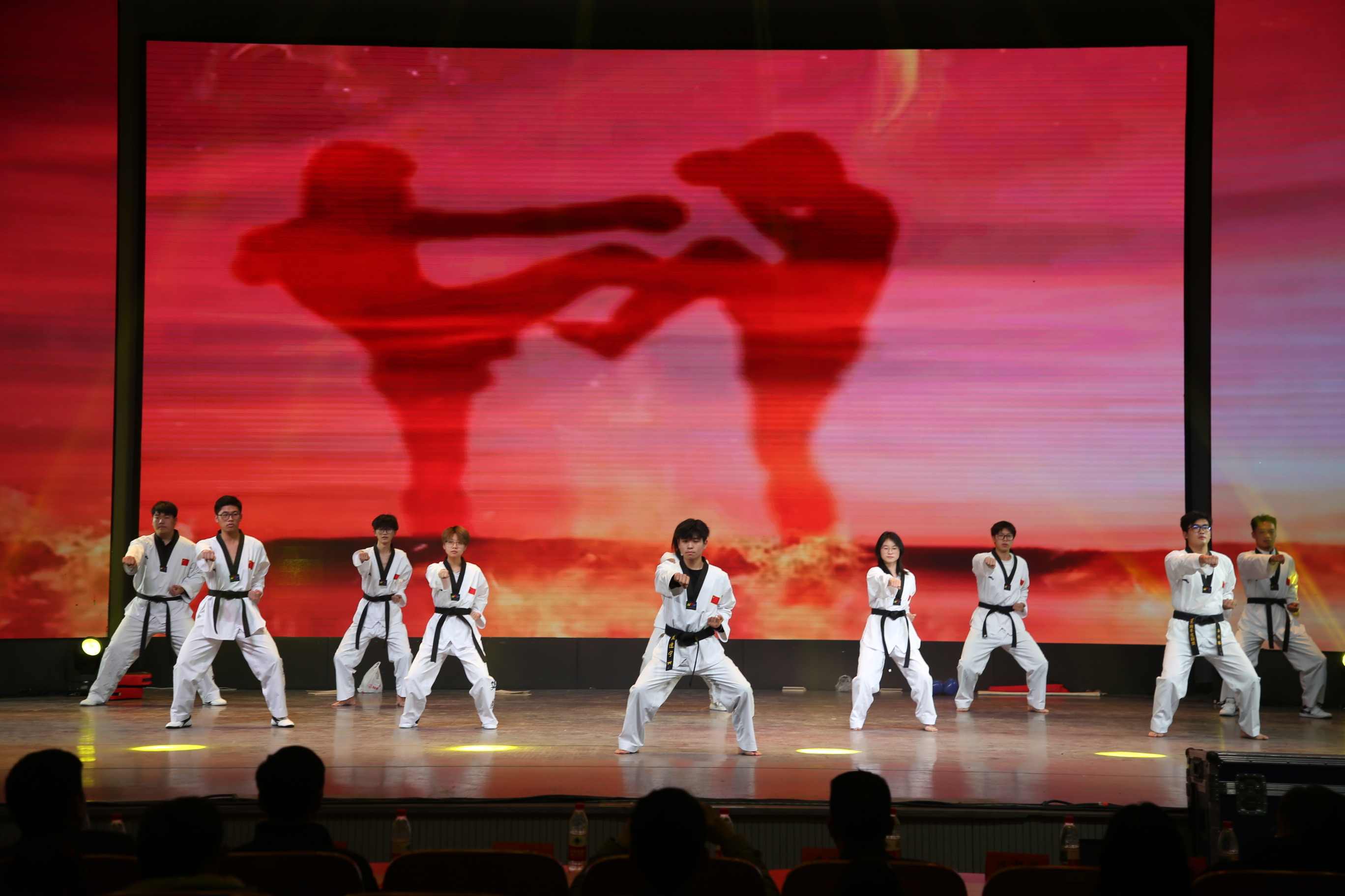 元旦晚会节目精彩纷呈。《我们回来了》《舞动跆风》尽显青春活力;小品《天网恢恢》警示反诈;红色主题表演与《月光下的中国》传递爱国情怀;军旅歌曲、师生合唱《不再犹豫》凝聚奋进力量,《白玉西扎》展现民族风情。晚会在全体师生合唱《我爱你中国》中落幕。